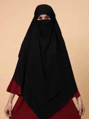 Introducing the elegant 2-layer Black Solid Prayer Khimar Hijab, tailored for adult girls and women seeking comfort and style. Crafted with a breathable, lightweight fabric, it offers modest coverage and a graceful drape, perfect for prayer and daily wear. Ideal for those embracing both tradition and contemporary fashion.