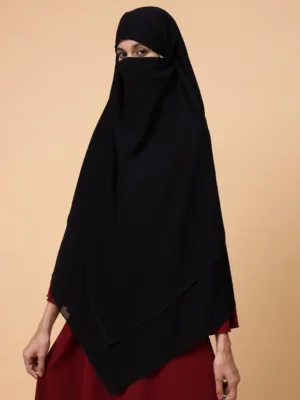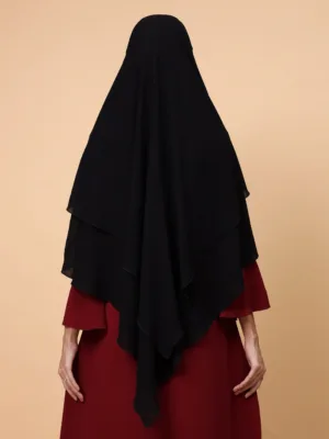 2-Layer Diamond Georgette Black Khimar Prayer Hijab for Women