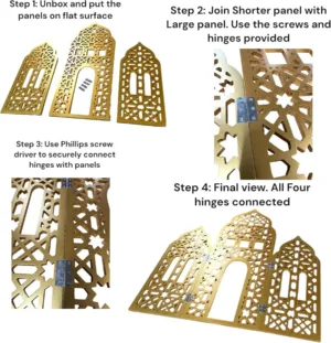Be the first to review “3 Panel Room Divider Folding Privacy Freestanding Partition Portable Wall for Prayer Room Privacy Screen Islamic Theme Room Divider Wood 3ft Ramadan Decorations 39.5″x38.5″ (Gold Gates)”