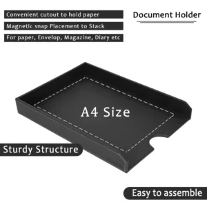 Add a uniquely individual character to your desk with the Oreo black vegan Leather Desk Set. All Six pieces in this set sport a stylish Smooth texture and a black color for an exotic look. The Mousepad has th ePlain Smooth finish Vegan leather on either side, flanking a White Thread Stitching make an attractive contrast. paper tray stores your stationery while your pens, pencils, stamps, and paper clips stay organised in the Desk Top Organiser, also matching tissue and coaster set along with Bottle tray gives your desk a neat & clean Look.