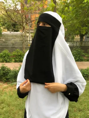 Experience everyday comfort and modesty with our Black Solid Half Niqab in Nida Matte fabric, tailored for adult girls and women. This versatile piece offers a relaxed, comfortable fit ideal for regular use. Embrace its smooth texture and sleek design, perfect for enhancing your modest attire while ensuring ease and coverage throughout your daily activities.
