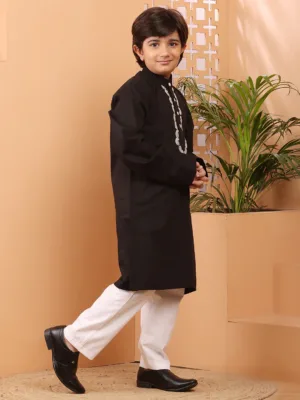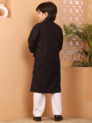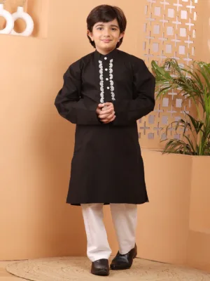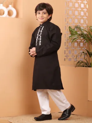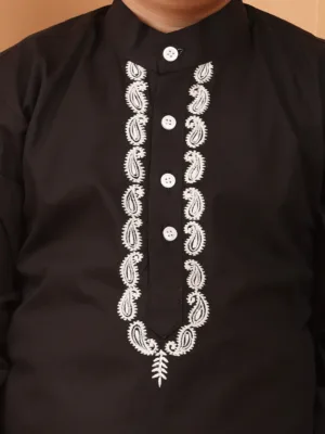 Black Solid Embroidery Detailing Kids Boy’s Kurta Pajama Set