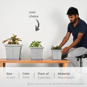 Earth Friendly 10″ Archway Planters with Tray | Set of 2 | Plant Pot Made with Rice Husk Biocomposite | UV Protected | Drainage Hole | Pots for Indoor, Outdoor, Balcony & Garden
