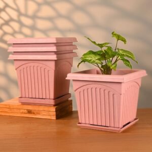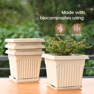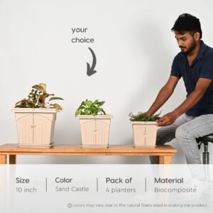 Earth Friendly 10″ Archway Planters with Tray | Set of 4 | Plant Pot Made with Rice Husk Biocomposite | UV Protected | Drainage Hole | Pots for Indoor, Outdoor, Balcony & Garden