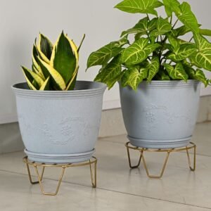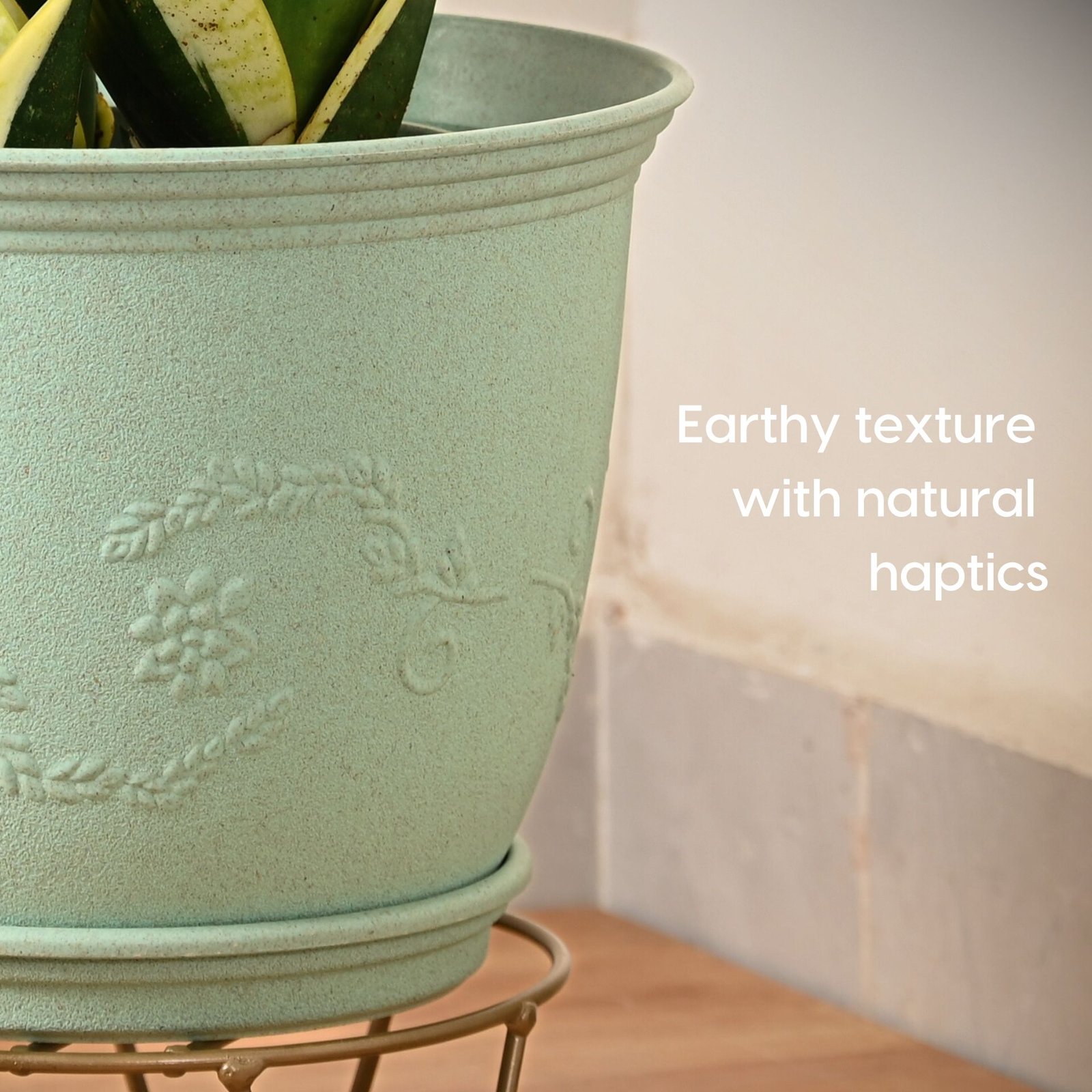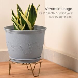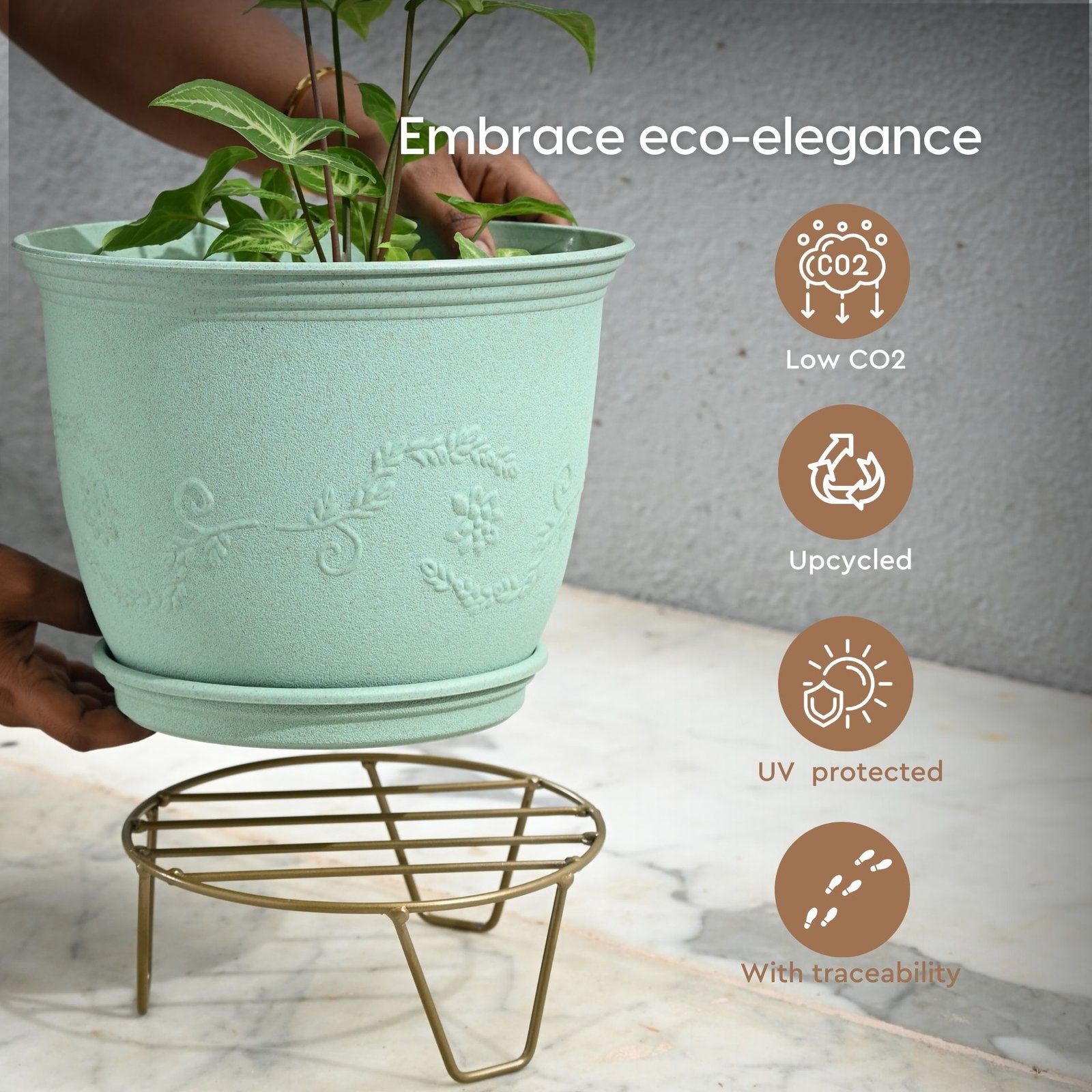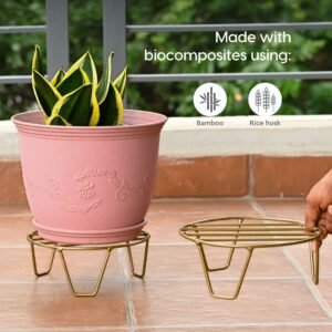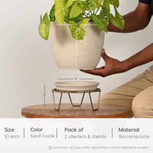 Earth-Friendly 10″ Leafy Planters with Tray & Stand | Set of 2 | Bamboo Fiber | UV Protected | Drainage Hole | Pots for Indoor, Outdoor, Balcony & Garden