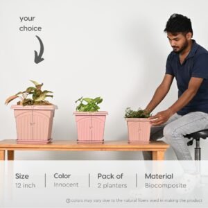 Earth Friendly 12″ Archway Planters with Tray | Set of 2 | Plant Pot Made with Rice Husk Biocomposite | UV Protected | Drainage Hole | Pots for Indoor, Outdoor, Balcony & Garden`