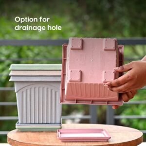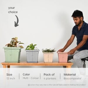 Earth Friendly 12″ Archway Planters with Tray | Set of 4 | Plant Pot Made with Rice Husk Biocomposite | UV Protected | Drainage Hole | Pots for Indoor, Outdoor, Balcony & Garden