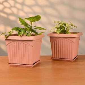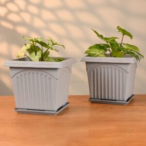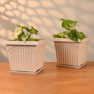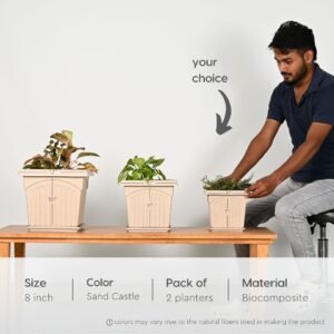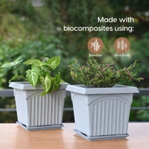 Earth Friendly 8″ Archway Planters with Tray | Set of 2 | Plant Pot Made with Rice Husk Biocomposite | UV Protected | Drainage Hole | Pots for Indoor, Outdoor, Balcony & Garden