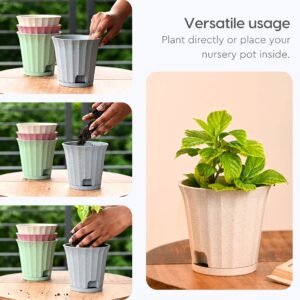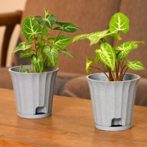 Earth Friendly Ace 5 inch | Set of 2 | Small Self Watering Pots for Indoor Plants | Plant Pot Made with Bamboo Fibers | Table Top Planters for Home Decor, Flower Pot for Living Room