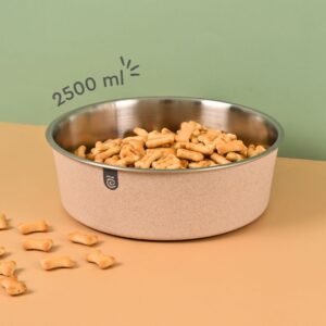 Earth Friendly Bella Pet Bowls for Dogs | 2500 ml | Steel Bowl for Dog | Made with Rice Husk | Dog Bowl Large Size