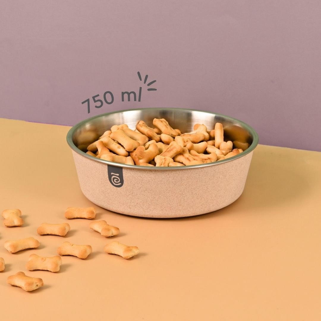 Earth Friendly Bella Pet Bowls for Dogs | 750 ml | Steel Bowl for Dog | Made with Rice Husk | Dog Food Bowl