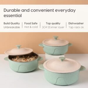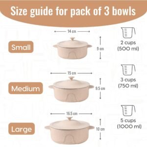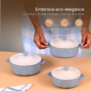 Earth Friendly Curve Serving Bowls with Lid | Set of 3 | 1000ml, 750ml & 500ml Each | Mixing & Serving Stainless Steel Bowl with Lid | Made with Rice Husk Biocomposite