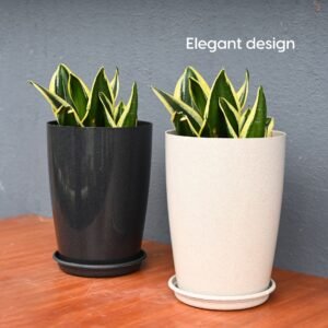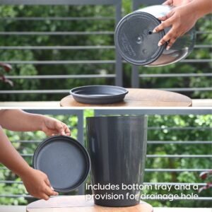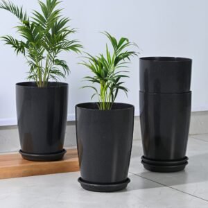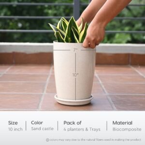 Earth Friendly Cypress 10″ | Set of 4 | Tower pots and Planters | Bamboo Based Flower Pots with Plates| UV Protected | Light Weight | for Indoor, Home Decor, Outdoor, Balcony & Garden