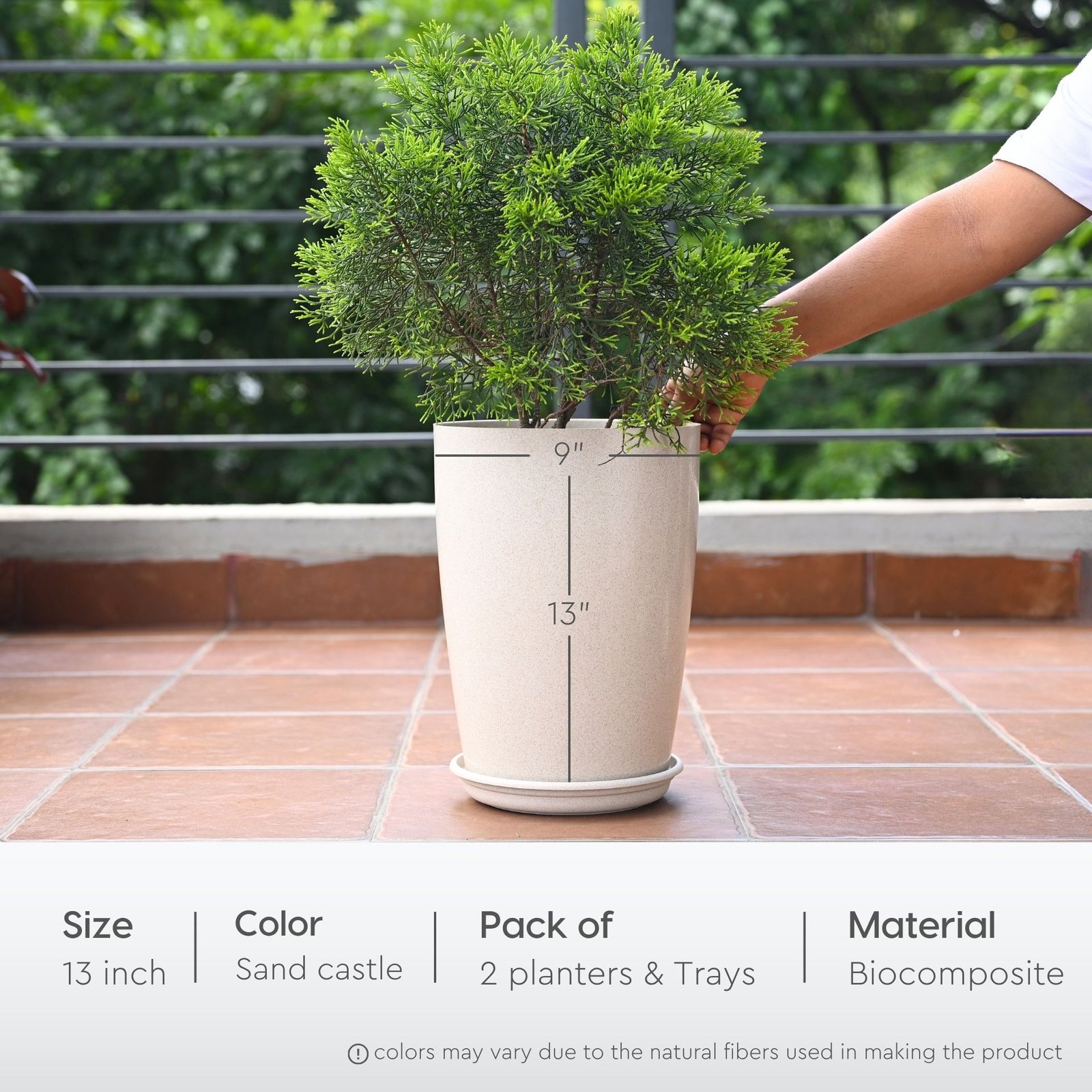 Earth Friendly Cypress 13″ | Set of 2 | Tower pots and Planters | Bamboo Based Flower Pots with Plates| UV Protected | Light Weight | for Indoor, Home Decor, Outdoor, Balcony & Garden