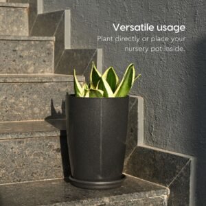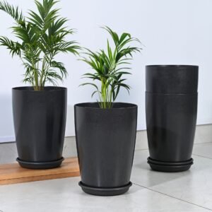 Earth Friendly Cypress 13″ | Set of 4 | Tower pots and Planters | Bamboo Based Flower Pots with Plates| UV Protected | Light Weight | for Indoor, Home Decor, Outdoor, Balcony & Garden