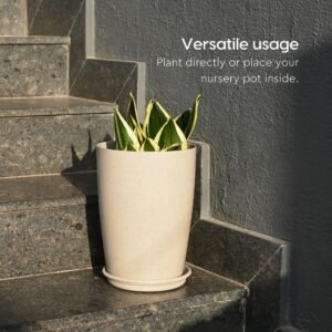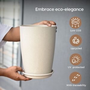 Earth Friendly Cypress 16″ | Set of 4 | Tower pots and Planters | Bamboo Based Flower Pots with Plates | UV Protected | Light Weight | for Indoor, Home Decor, Outdoor, Balcony & Garden