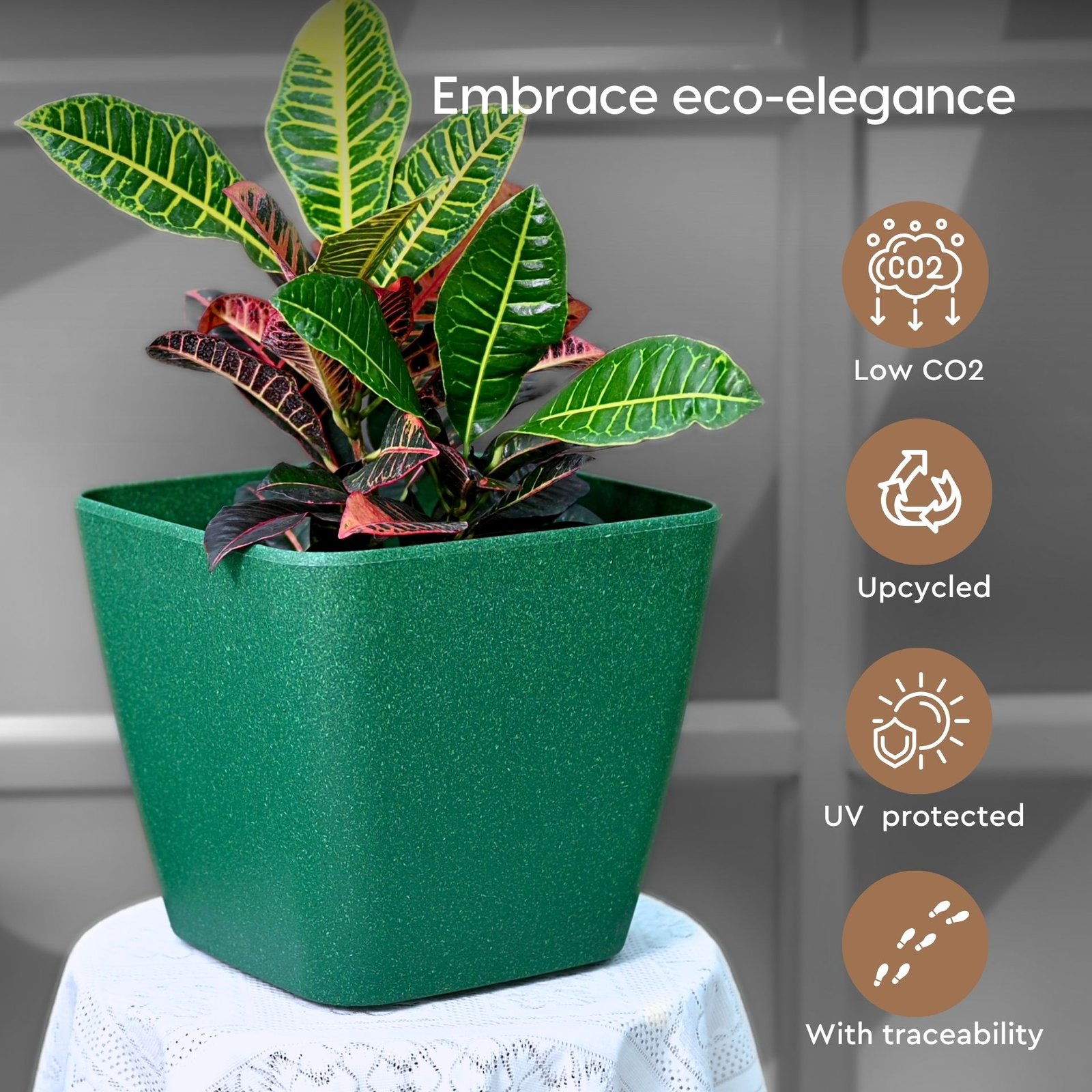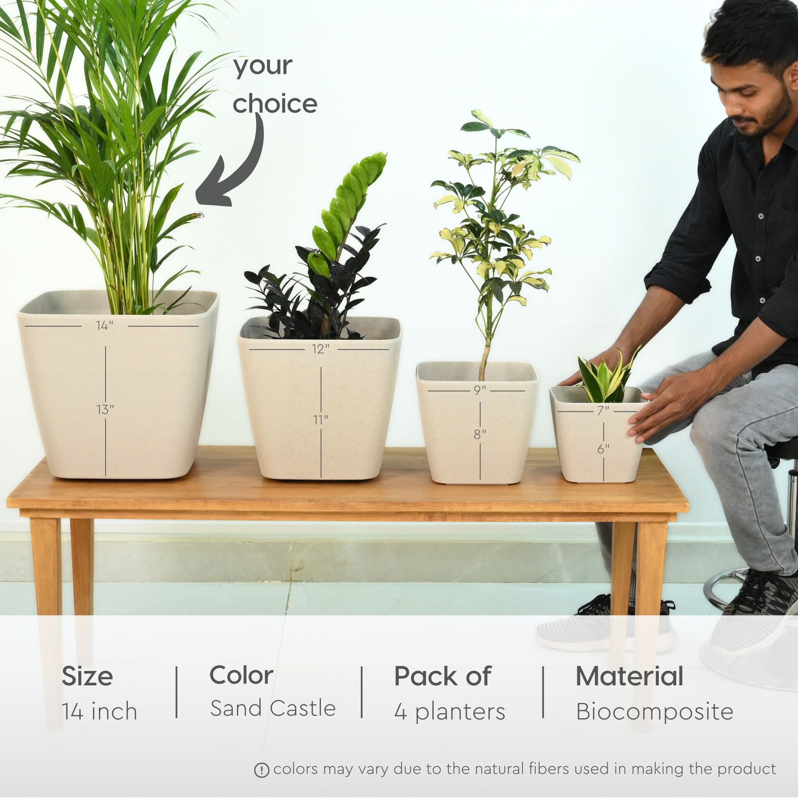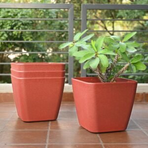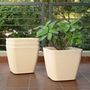 Earth-Friendly Daisy Self Watering Planters 14 Inch set of 4 | Wheeled Planter | Bamboo Based Pots and Planters | UV Protected | Eco friendly planters for Indoor, Outdoor, Home Decor, Balcony & Garden