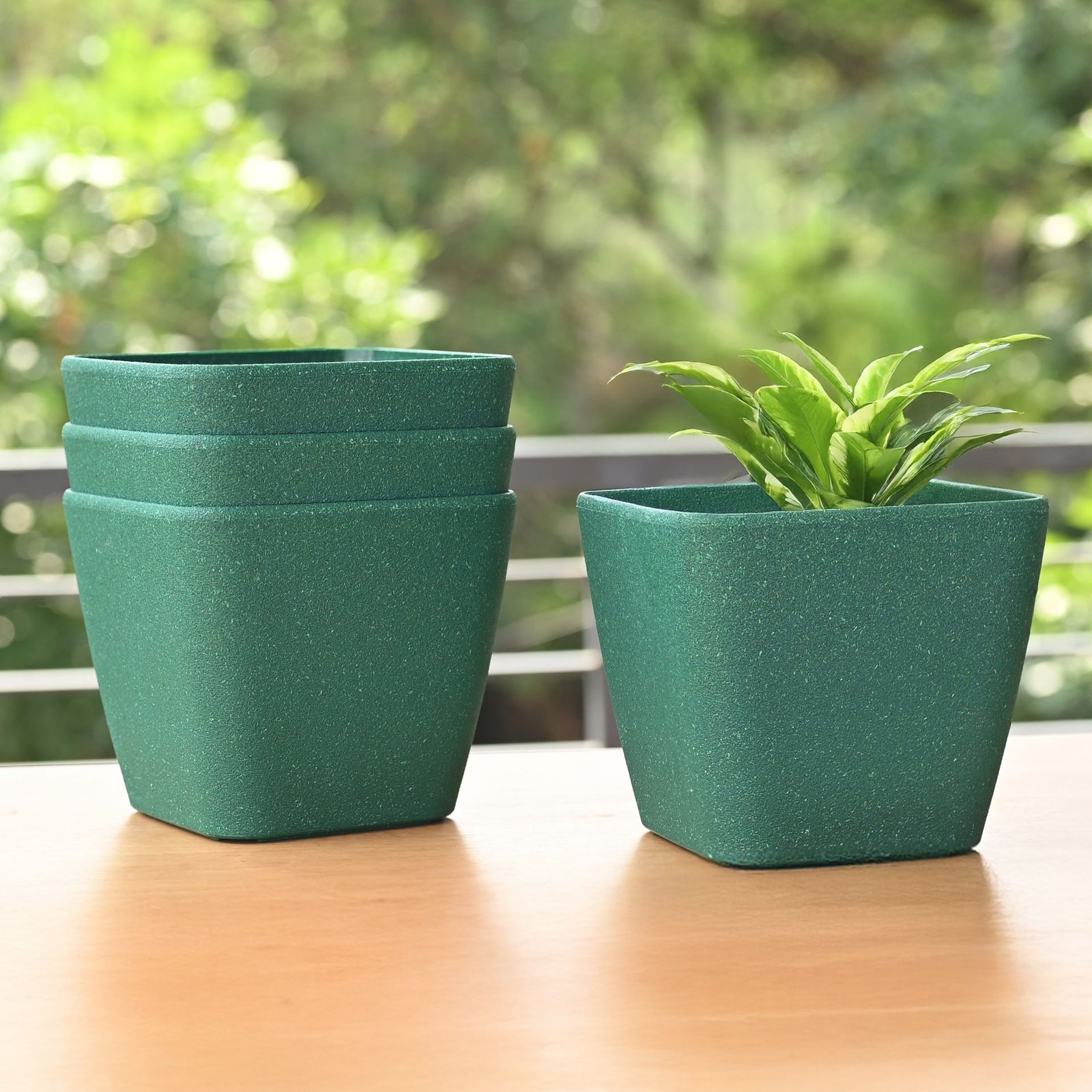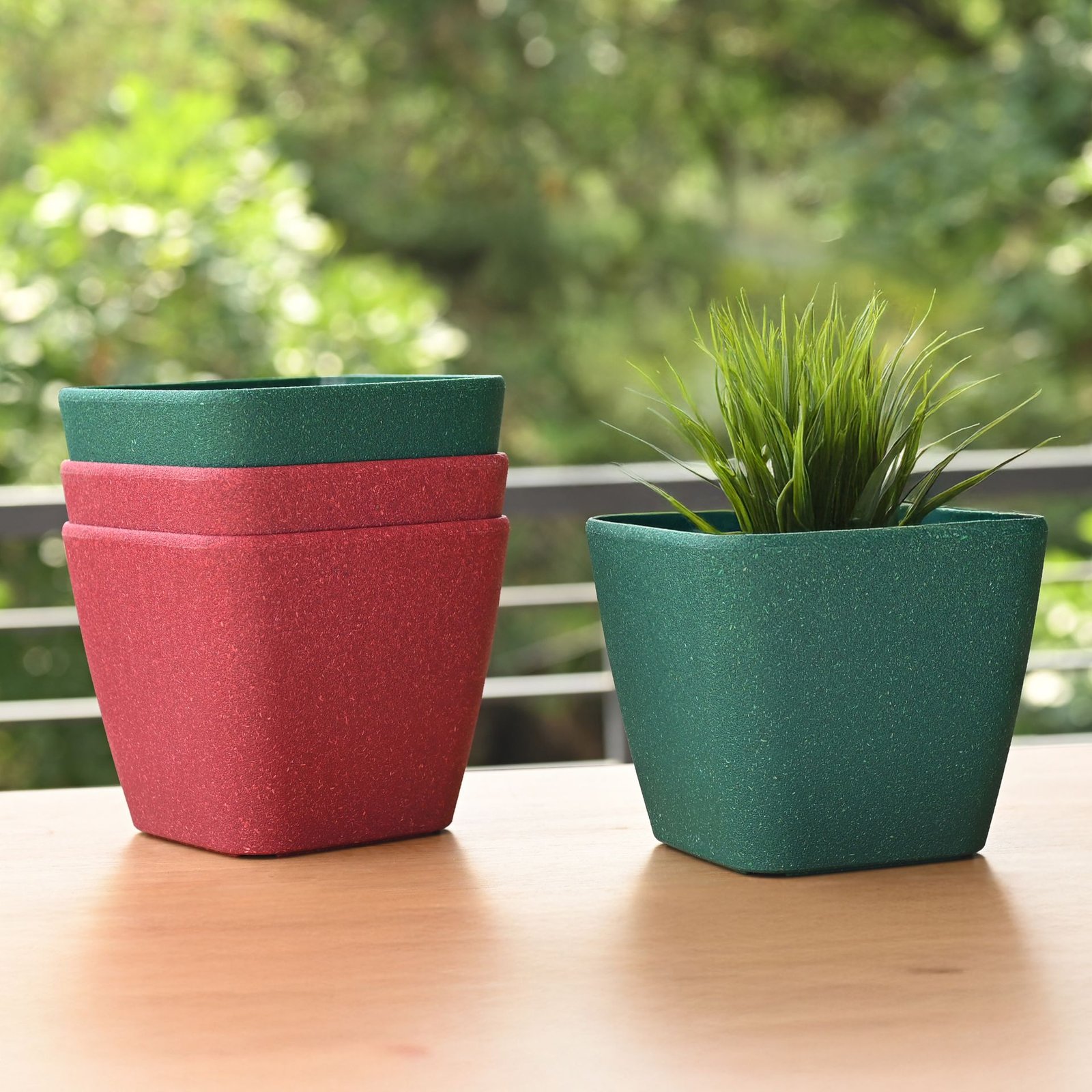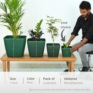 Earth-Friendly Daisy Self Watering Planters 7 Inch set of 4 | Bamboo Based Pots and Planters | UV Protected | Eco friendly planters for Indoor, Outdoor, Home Decor, Balcony & Garden