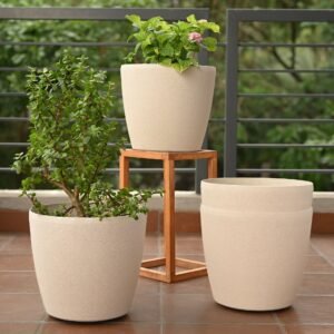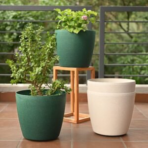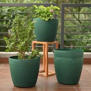 Earth-Friendly Deco Wheeled Planter 14 Inch set of 4 | Self Watering Planters | Bamboo Based Pots and Planters | UV Protected | Eco friendly planters for Indoor, Outdoor, Home Decor, Balcony & Garden