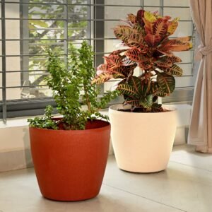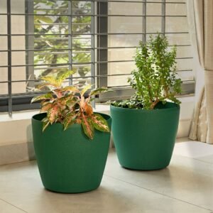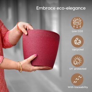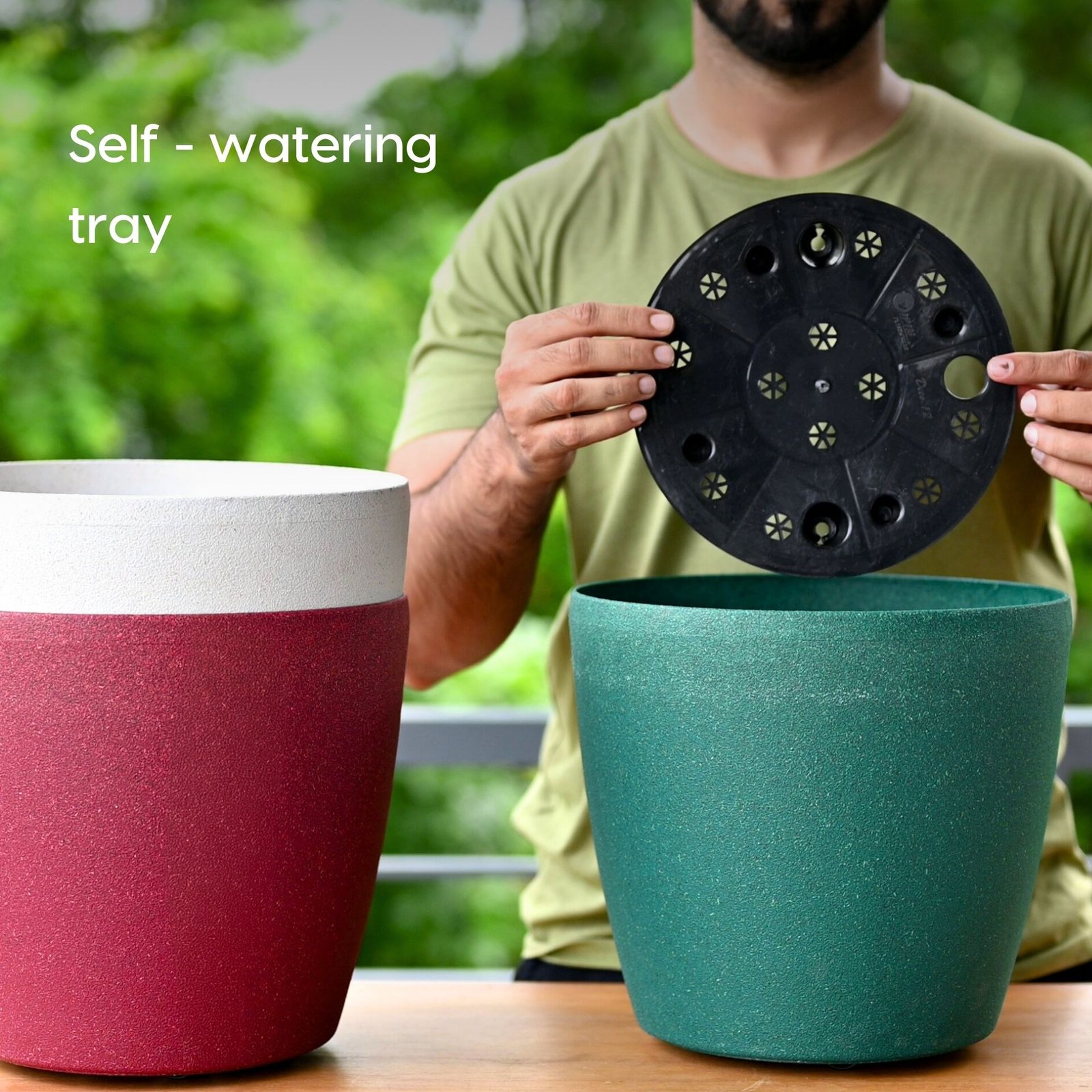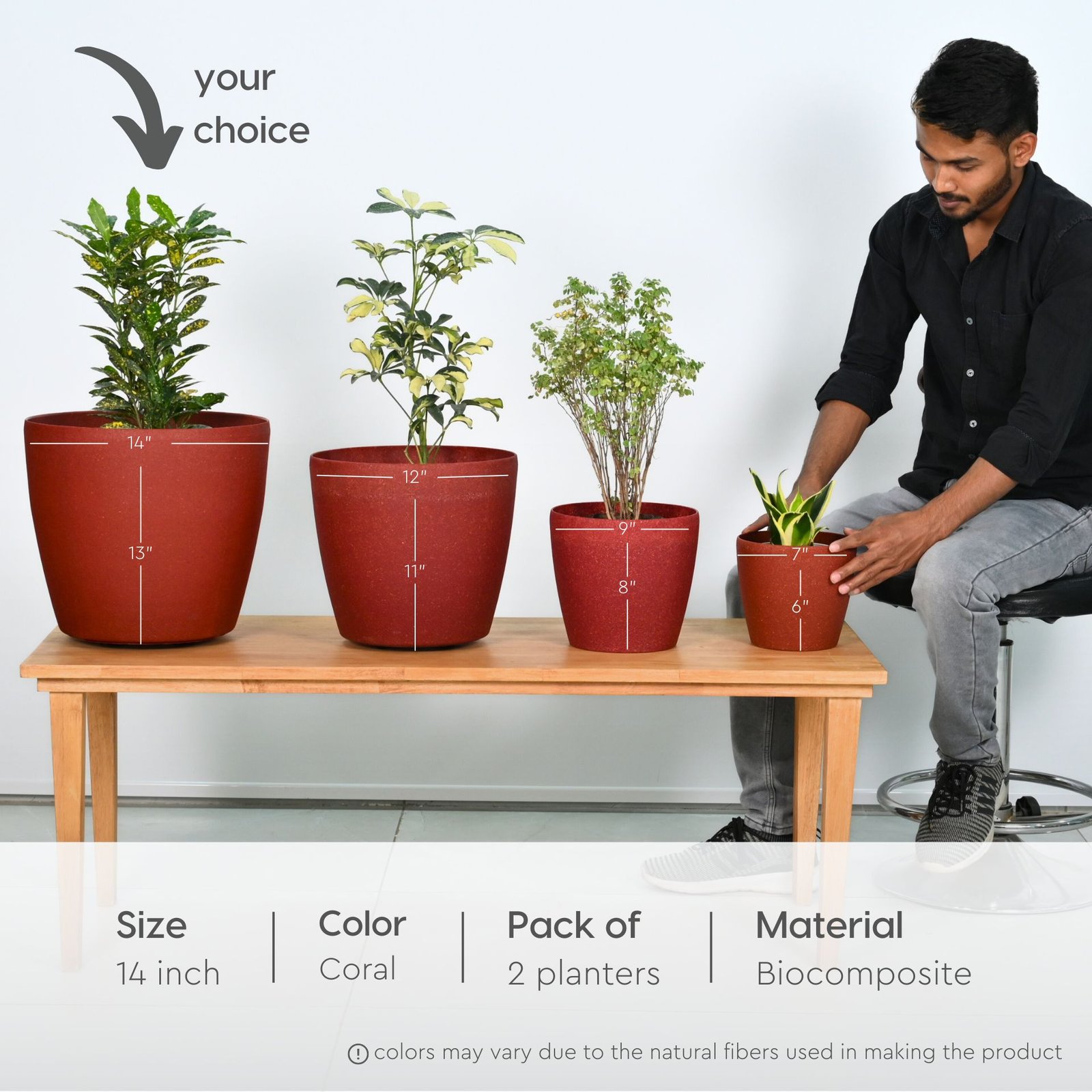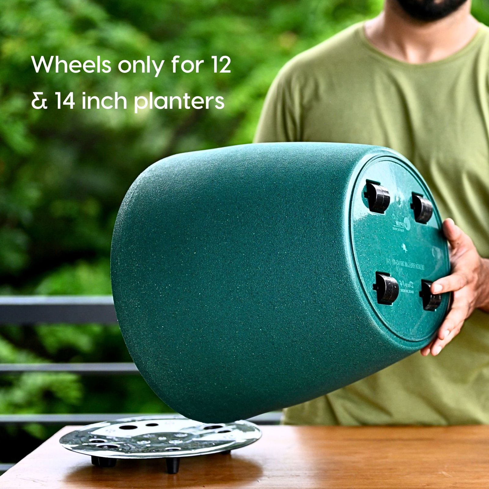 Earth-Friendly Deco Wheeled Planters 14 Inch set of 2 | Self Watering | Bamboo Based Pots and Planters | UV Protected | Eco friendly planters for Indoor, Outdoor, Home Decor, Balcony & Garden