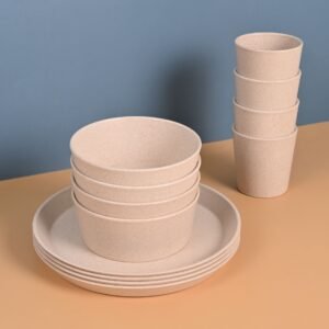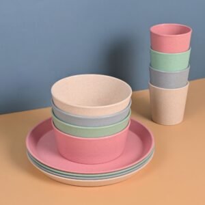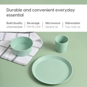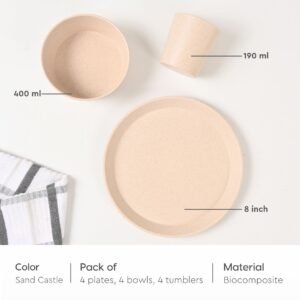 Earth Friendly Dinner Set for Kids | Set of 4 | Small Plates for Kids Made with Rice Husk | BPA Free | Small Kids Plates, Bowls and Tumblers