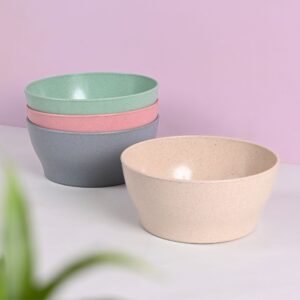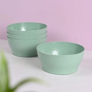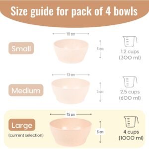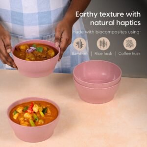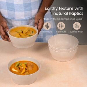 Earth Friendly Elara Curry Bowls | Set of 4 | 1000 ml | Microwave Safe Bowl Set (Reheat) | Snack Bowl Made with Rice Husk Biocomposite | for Hot & Cold Serving