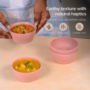 Be the first to review “Earth Friendly Elara Curry Bowls | Set of 4 | 300 ml | Microwave Safe Bowl Set (Reheat) | Snack Bowl Made with Rice Husk Biocomposite| for Hot & Cold Serving”