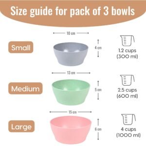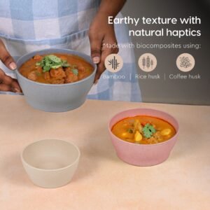 Earth Friendly Elara Serving Bowls | 1000 ml, 600ml, 300ml | Set of 3 | Microwave Safe Bowl Set | Mixing Bowl Made with Rice Husk Biocomposite | for Hot & Cold