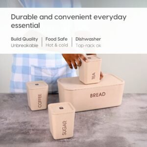 Earth Friendly Kitchen Storage Jars & Containers and Bread Box | Set of 4, 6000 ml & 800ml x 3 | Multipurpose kitchen Container Boxes For Storage Made With Rice Husk | Airtight
