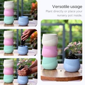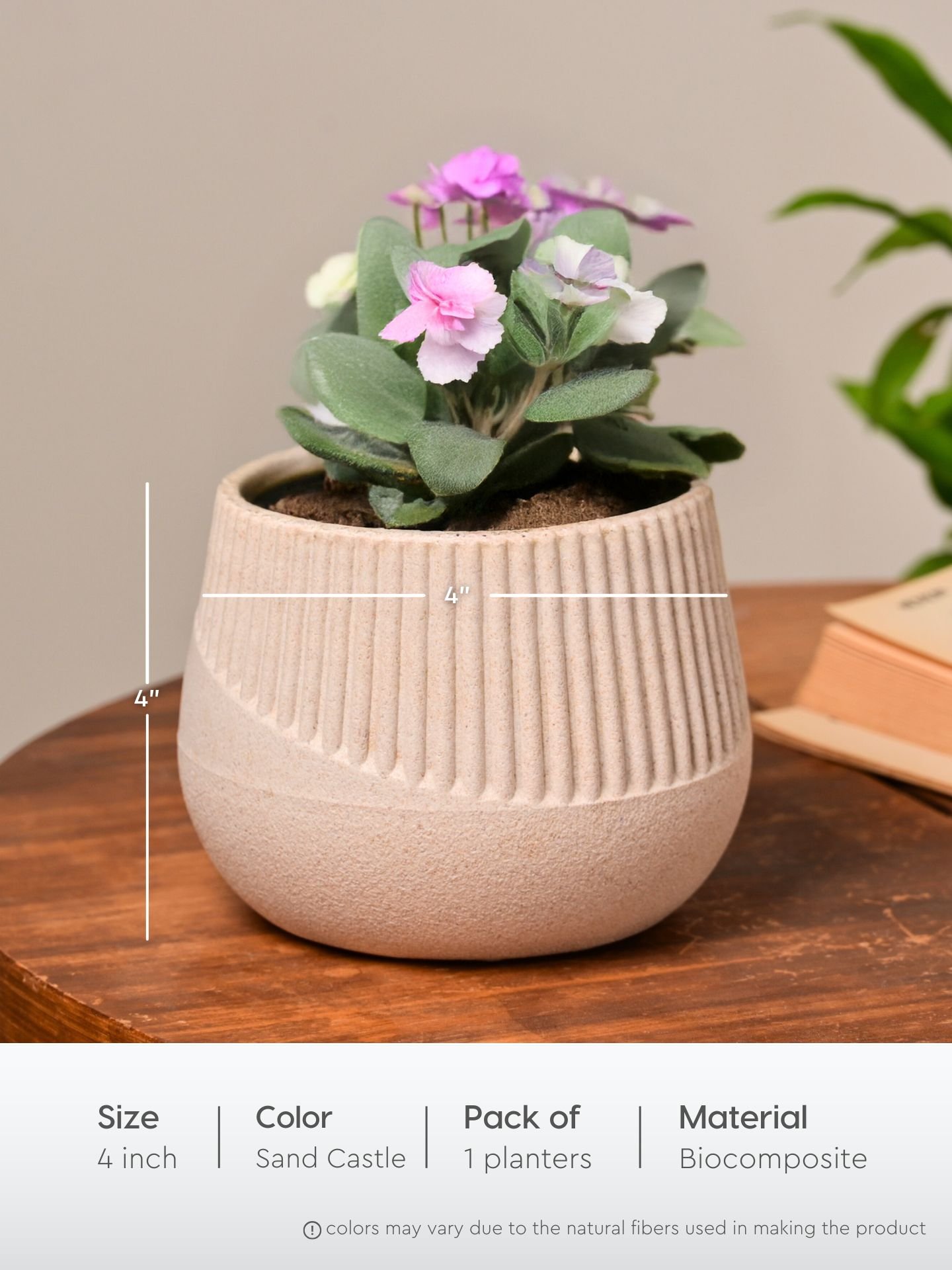Earth-Friendly Oreo 4 inch small pots | Set of 1 | Plant Pot made with Bamboo Fibers | Table Top Planters for Home Decor and Office, Flower Pot for Living Room