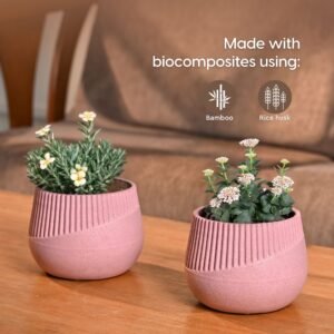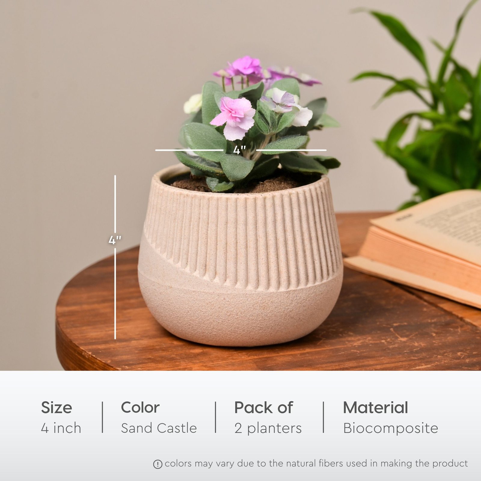 Earth-Friendly Oreo 4 inch small pots | Set of 2 | Plant Pot made with Bamboo Fibers | Table Top Planters for Home Decor and Office, Flower Pot for Living Room