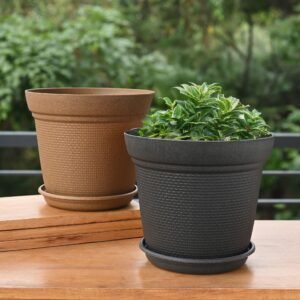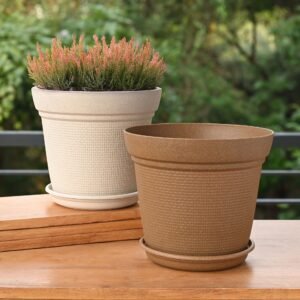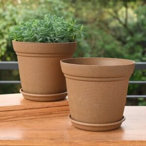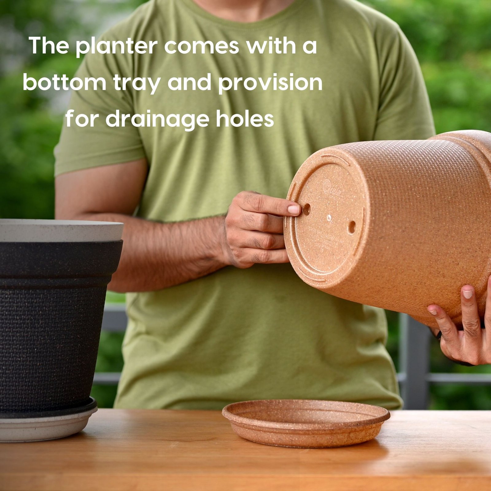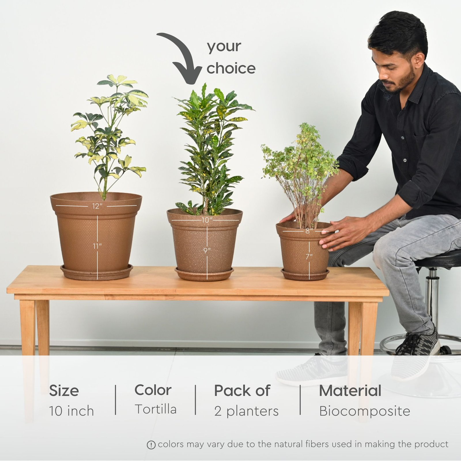 Earth-Friendly Planters Aura 10 Inch set of 2 | Bamboo Based Pots and Planters | UV Protected | Eco friendly planters for Indoor, Outdoor, Home Decor, Balcony & Garden