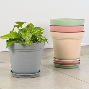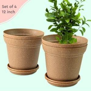 Earth-Friendly Planters Aura 12 Inch set of 4 | Bamboo Based Pots and Planters | UV Protected | Eco friendly planters for Indoor, Outdoor, Home Decor, Balcony & Garden