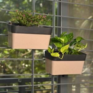 Earth Friendly Planters DuoSling 12 inch | Set of 2 | Flower Pots for Home Decoration | Made with Bamboo Fibers, UV Protected Flower Pot | Hanging Planters for Living Room
