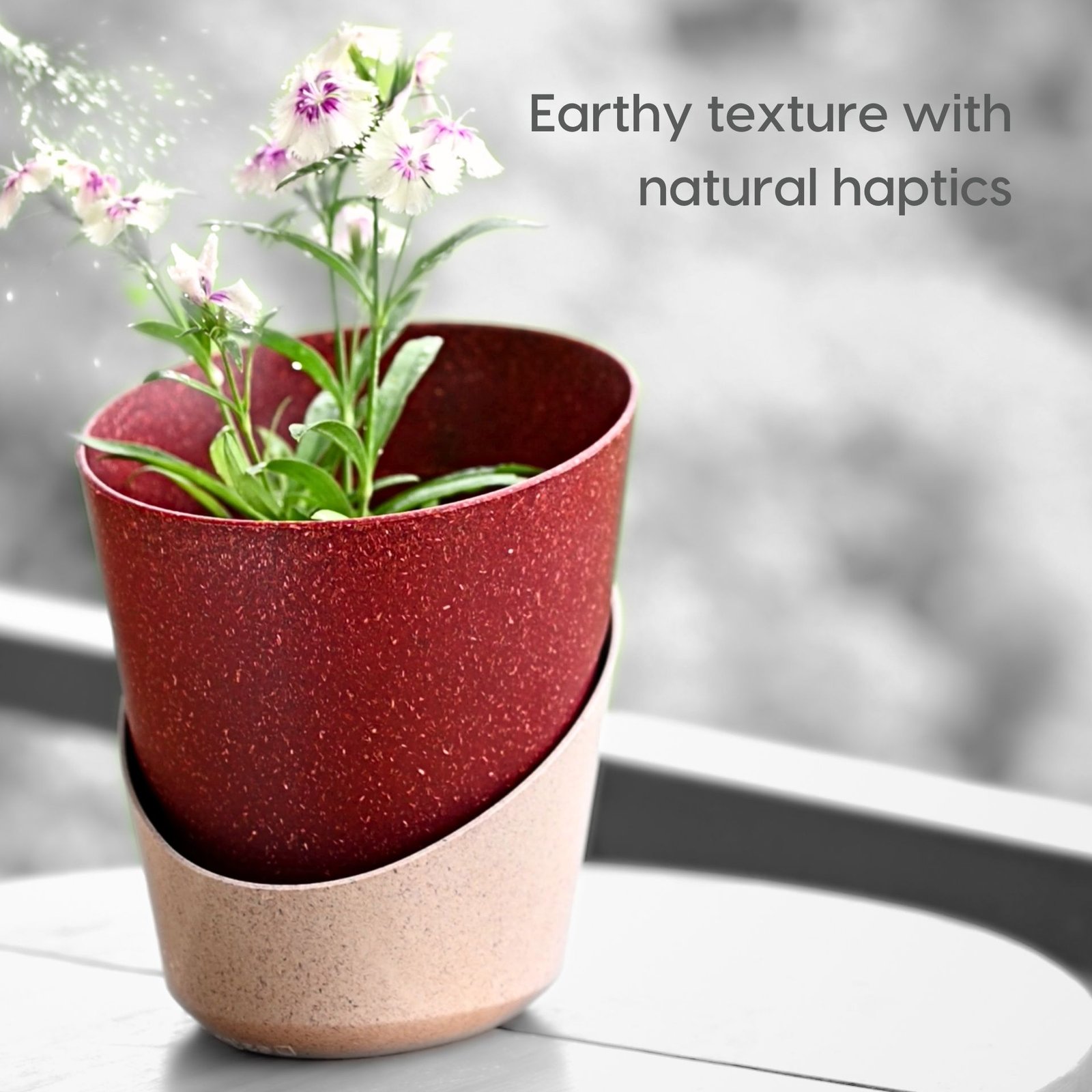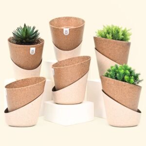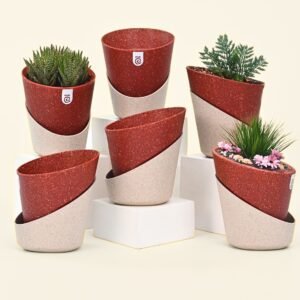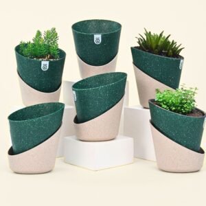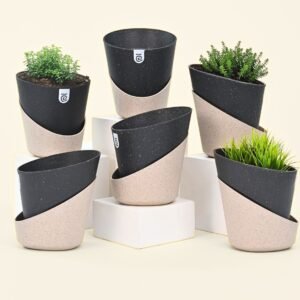 Earth-Friendly Planters EcoBloom 7 Inch set of 6 | Self watering Planters| Bamboo Based Pots and Planters | UV Protected | Eco friendly planters for Indoor, Outdoor, Home Decor, Mini Gamley for Balcony & Garden