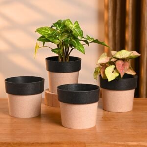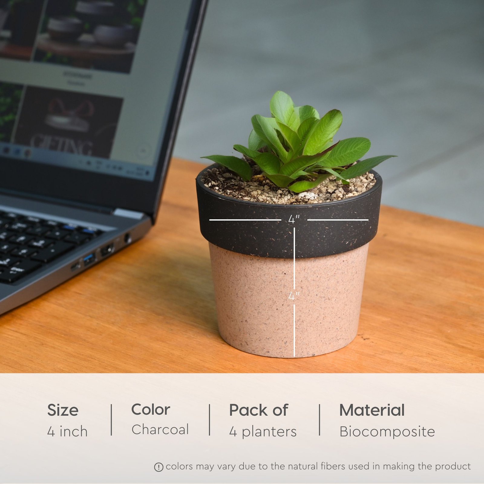 Earth-Friendly Planters EcoPod 4 Inch set of 4 | Bamboo Based Pots and Planters | UV Protected | Eco friendly planters for Indoor, Outdoor, Home Decor, Mini Gamley for Balcony & Garden