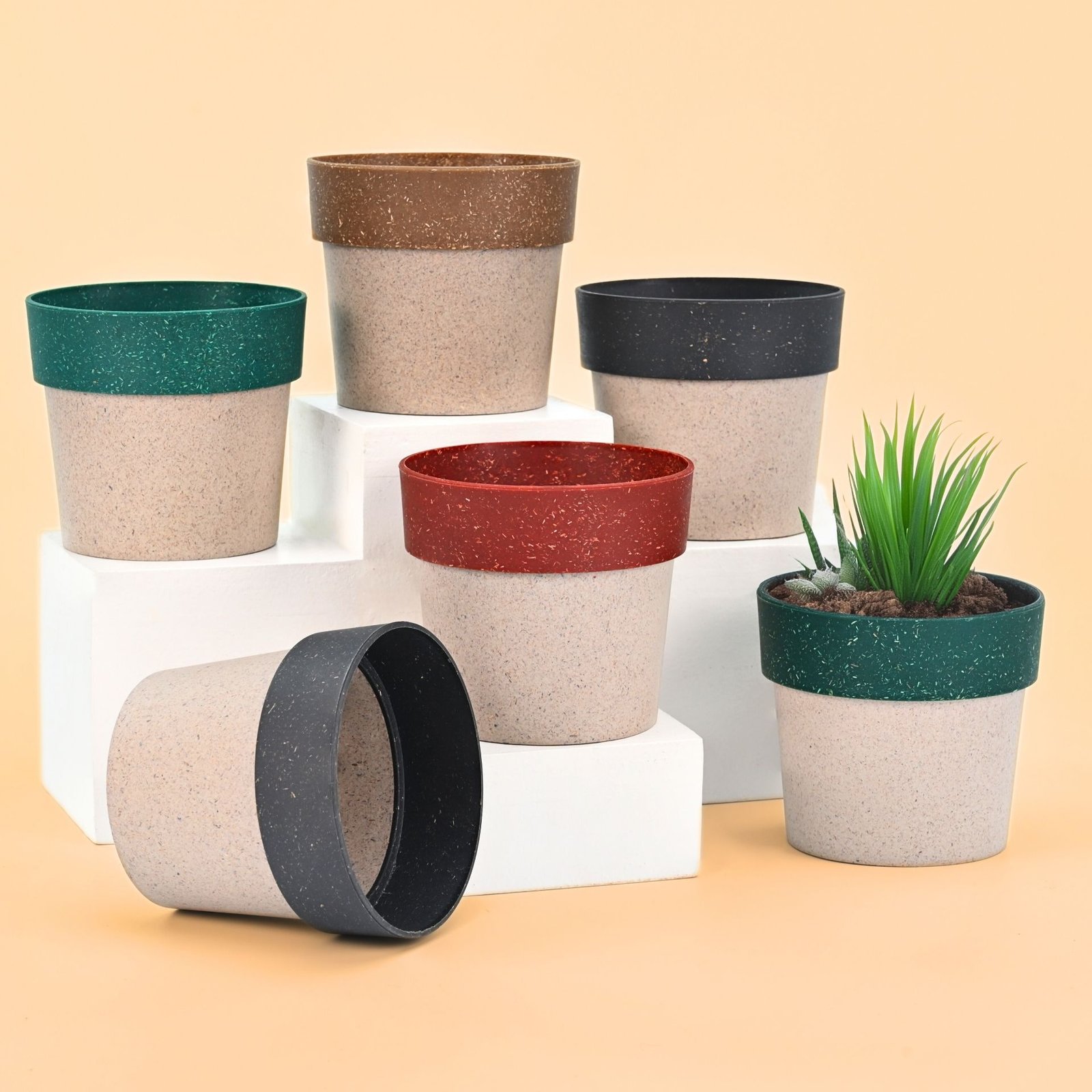 Earth-Friendly Planters EcoPod 4 Inch set of 6 | Bamboo Based Pots and Planters | UV Protected | Eco friendly planters for Indoor, Outdoor, Home Decor, Mini Gamley for Balcony & Garden