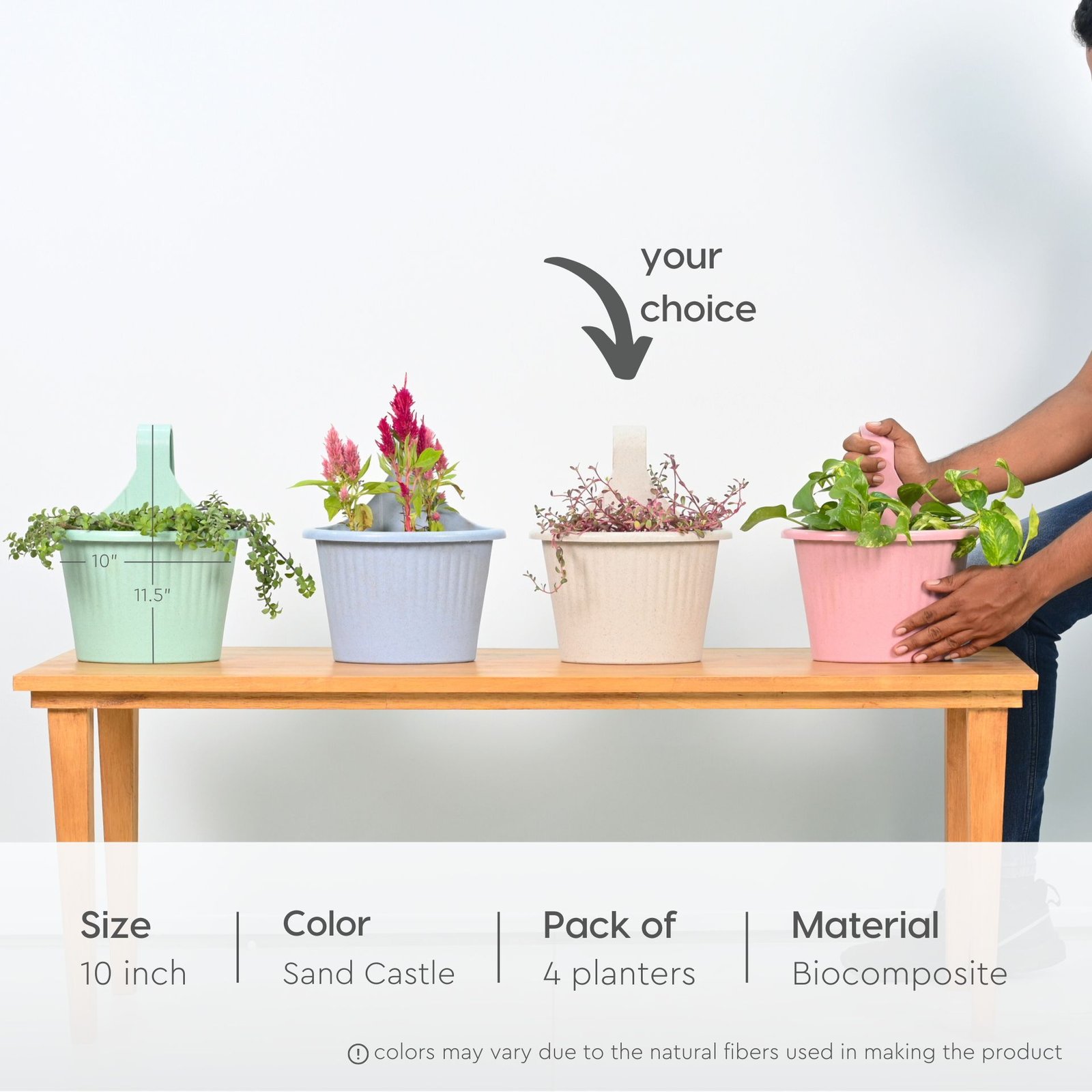 Earth-Friendly Planters Ecosling 10 Inch set of 4 | Bamboo Based Pots and Planters | UV Protected | Eco friendly planters for Indoor, Outdoor, Home Decor, Balcony & Garden
