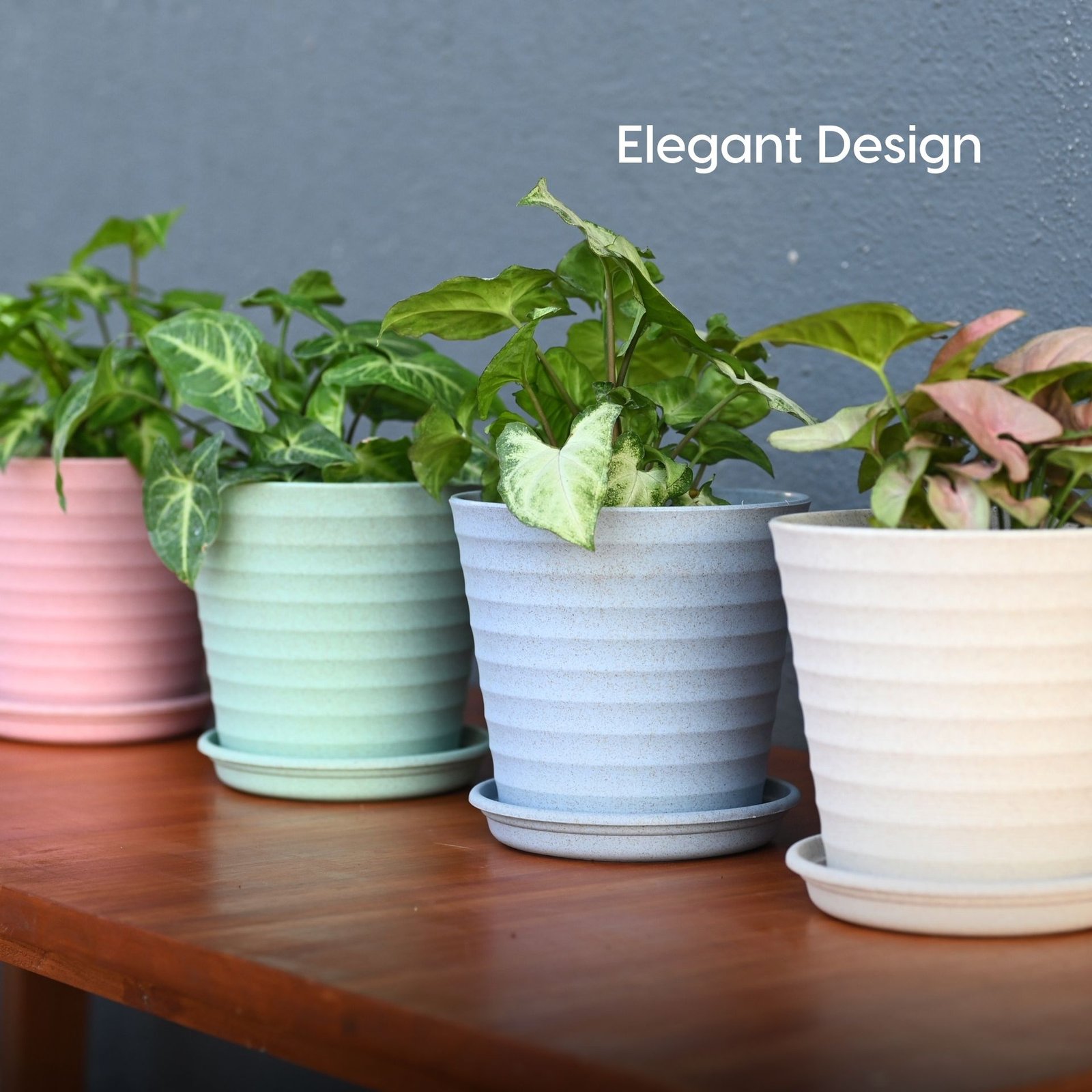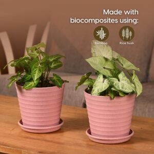 Earth Friendly Planters Linea 5.5 Inch | Set of 6 | Bamboo Pots & Planters with trays | UV Protected | Eco friendly planters for Indoor, Outdoor, Home Decor, Balcony & Garden