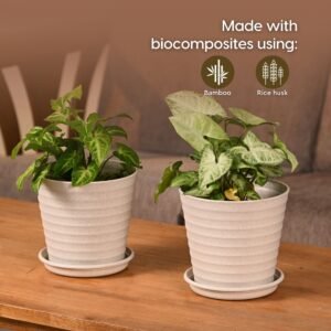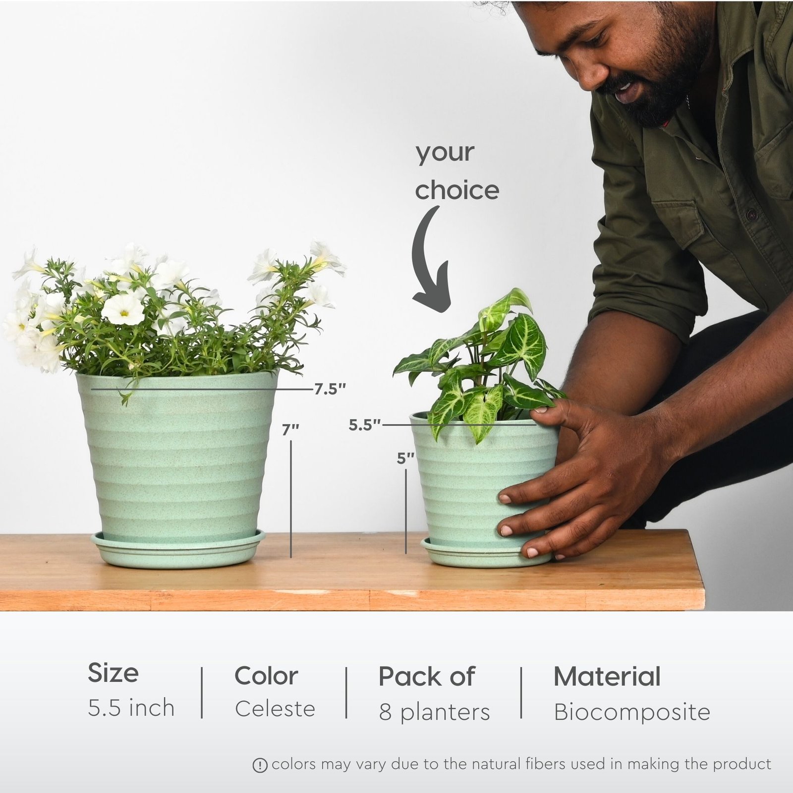 Earth Friendly Planters Linea 5.5 Inch | Set of 8 | Bamboo Pots & Planters with trays | UV Protected | Eco friendly planters for Indoor, Outdoor, Home Decor, Balcony & Garden