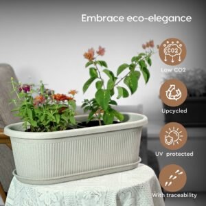 Earth-Friendly Planters Regalia 16 Inch set of 2 | Bamboo Based Pots and Planters | UV Protected | Eco friendly planters with tray for Indoor, Outdoor, Home Decor, Balcony & Garden