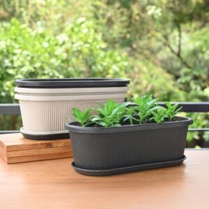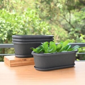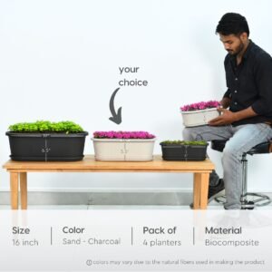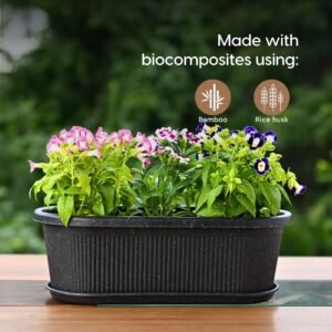 Earth-Friendly Planters Regalia 16 Inch set of 4 | Bamboo Based Pots and Planters | UV Protected | Eco friendly planters with tray for Indoor, Outdoor, Home Decor, Balcony & Garden