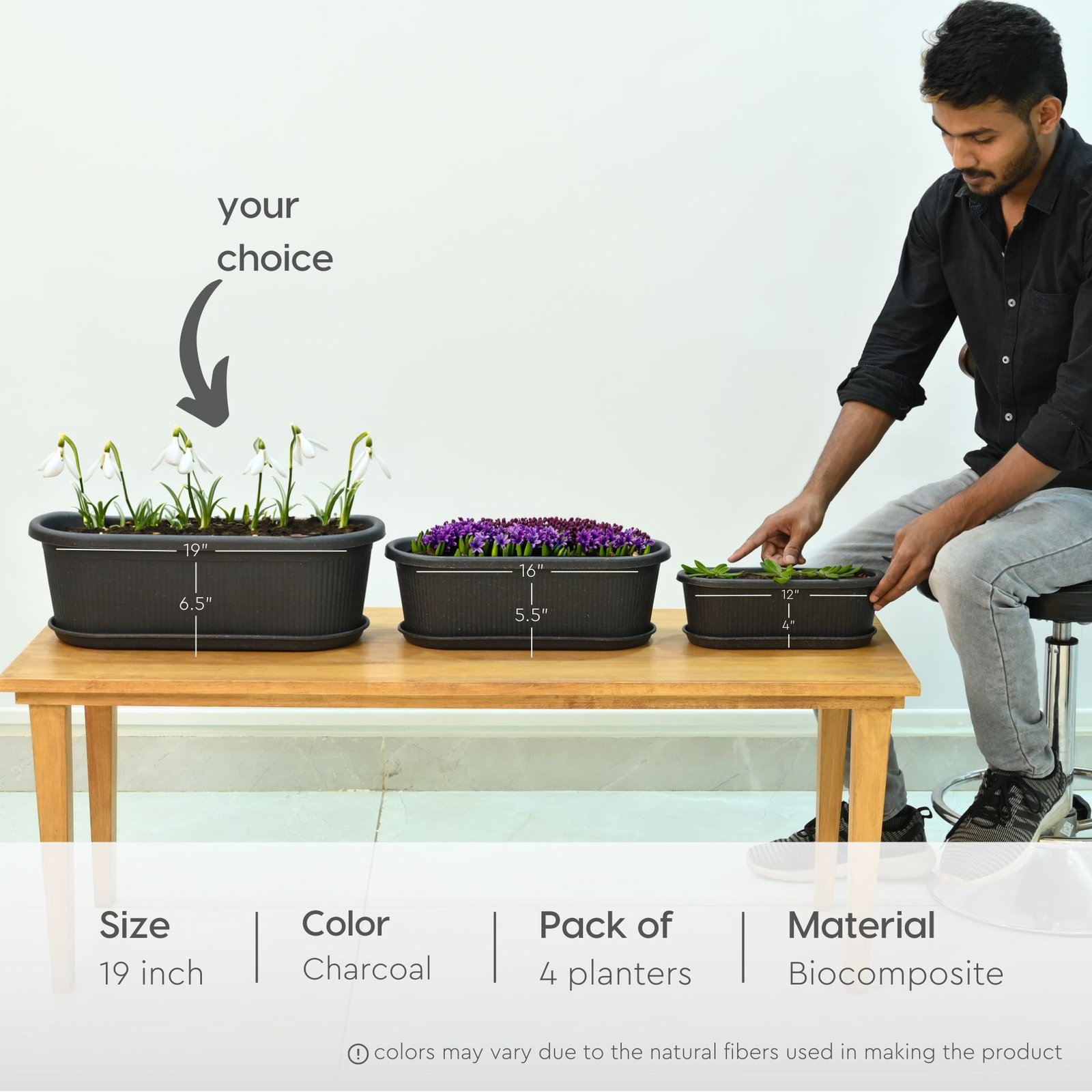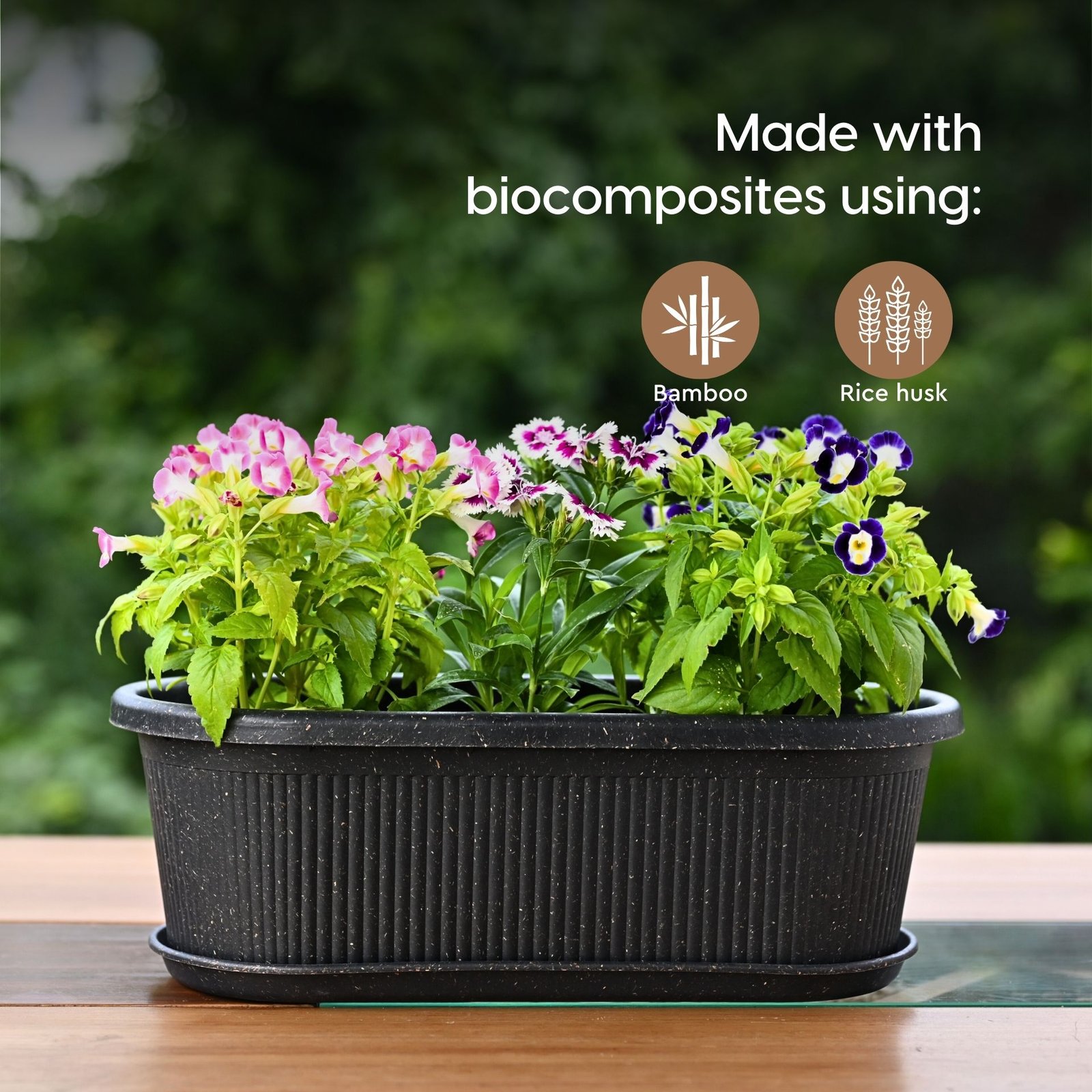Earth-Friendly Planters Regalia 19 Inch set of 4 | Bamboo Based Pots and Planters | UV Protected | Eco friendly planters with tray for Indoor, Outdoor, Home Decor, Balcony & Garden