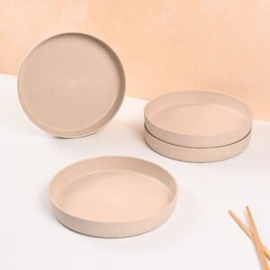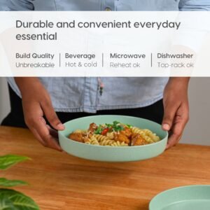 Earth Friendly Verde Round Plates | Set of 4 | 8 inch | Made with Rice Husk Biocomposite | Breakfast Plates | Unbreakable Dinner Plates Set | Microwave Safe