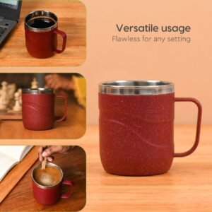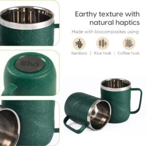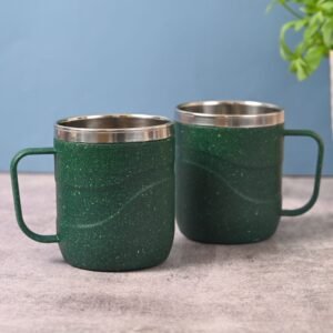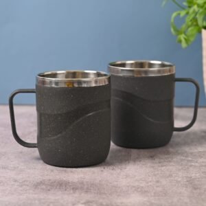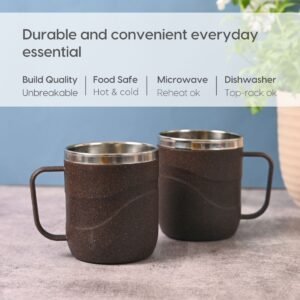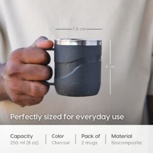 Earth Friendly Wave Stainless Steel Insulated Coffee Mug | Set of 2 | 250 ml | Mugs Made with Rice Husk Biocomposite | Mugs for Coffee | Mugs for Gift