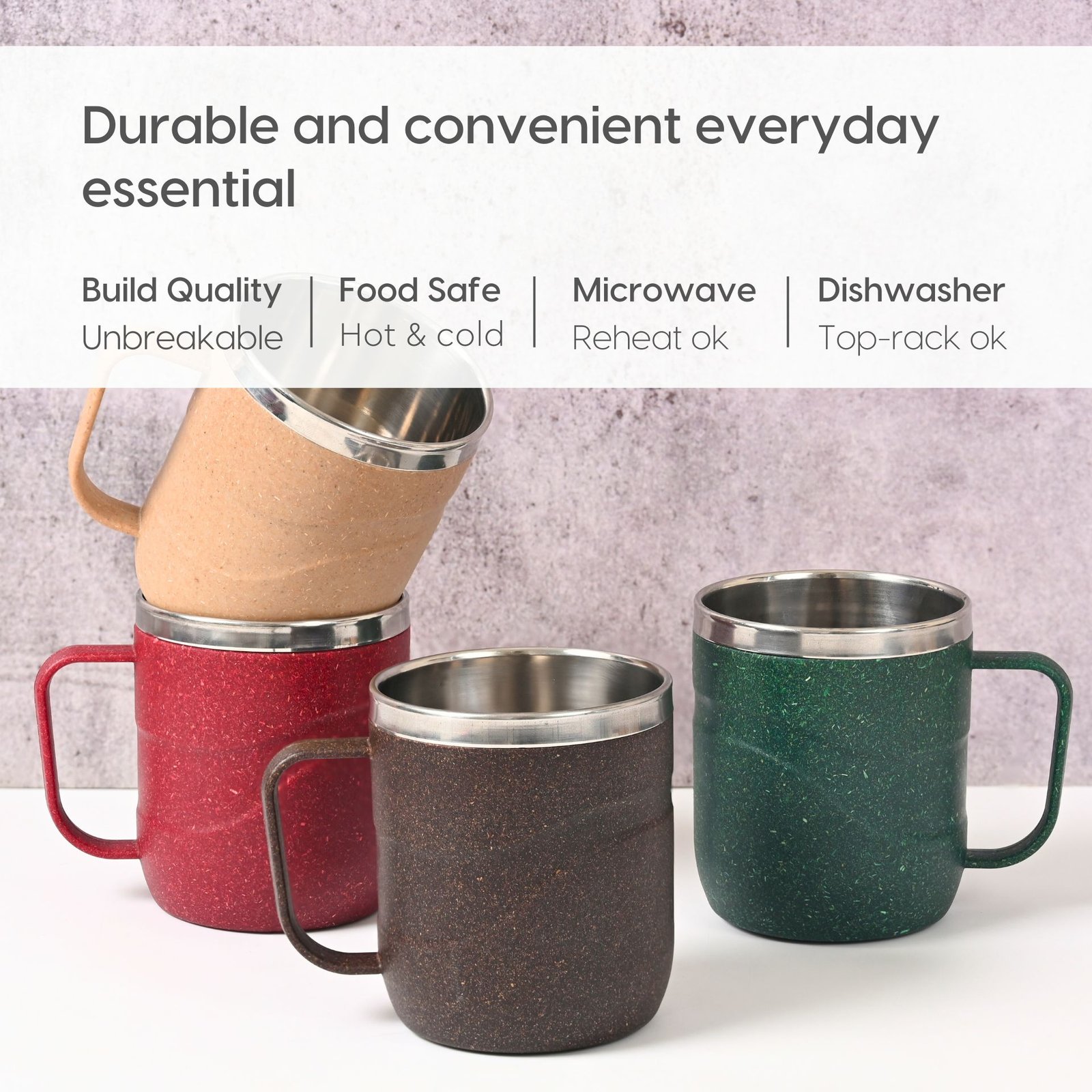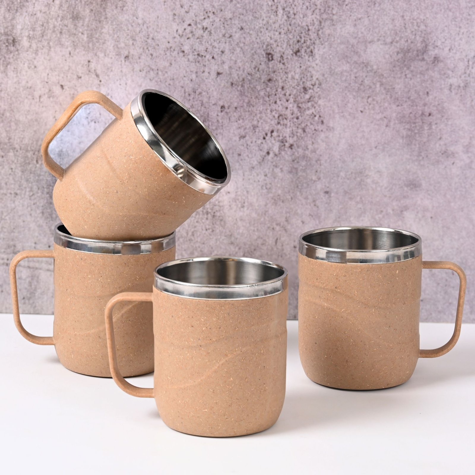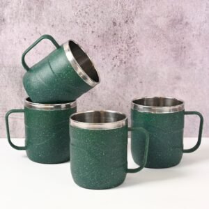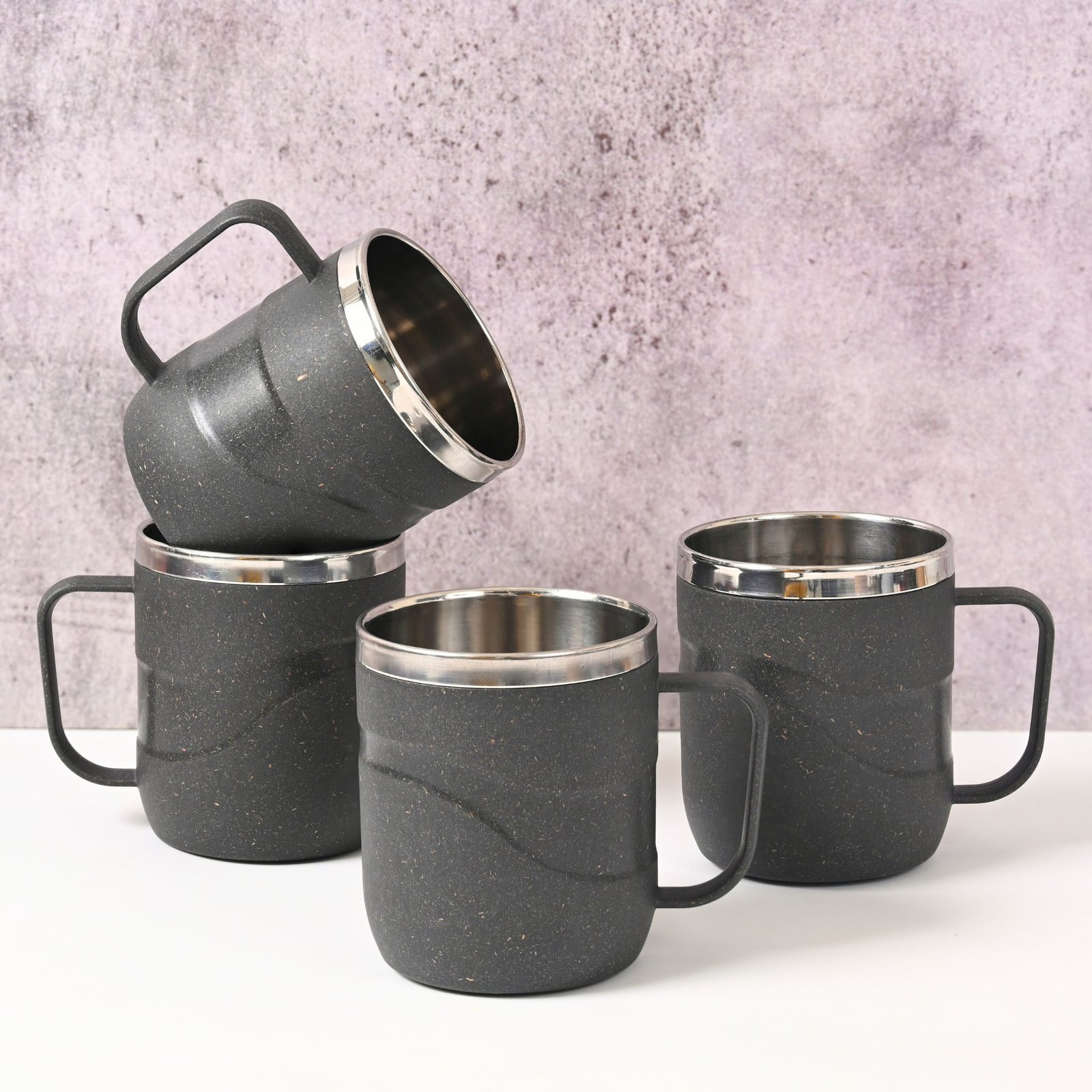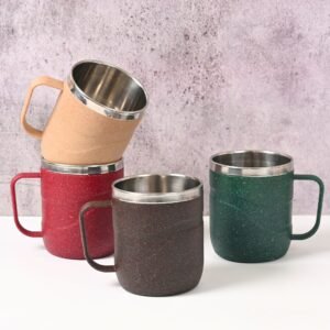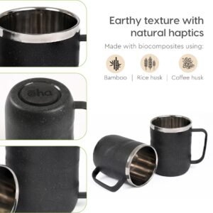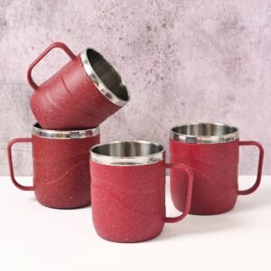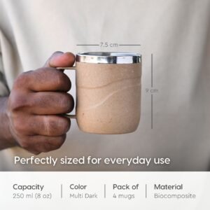 Earth Friendly Wave Stainless Steel Insulated Coffee Mug | Set of 4 | 250 ml | Mugs Made with Rice Husk Biocomposite | Mugs for Coffee | Mugs for Gift