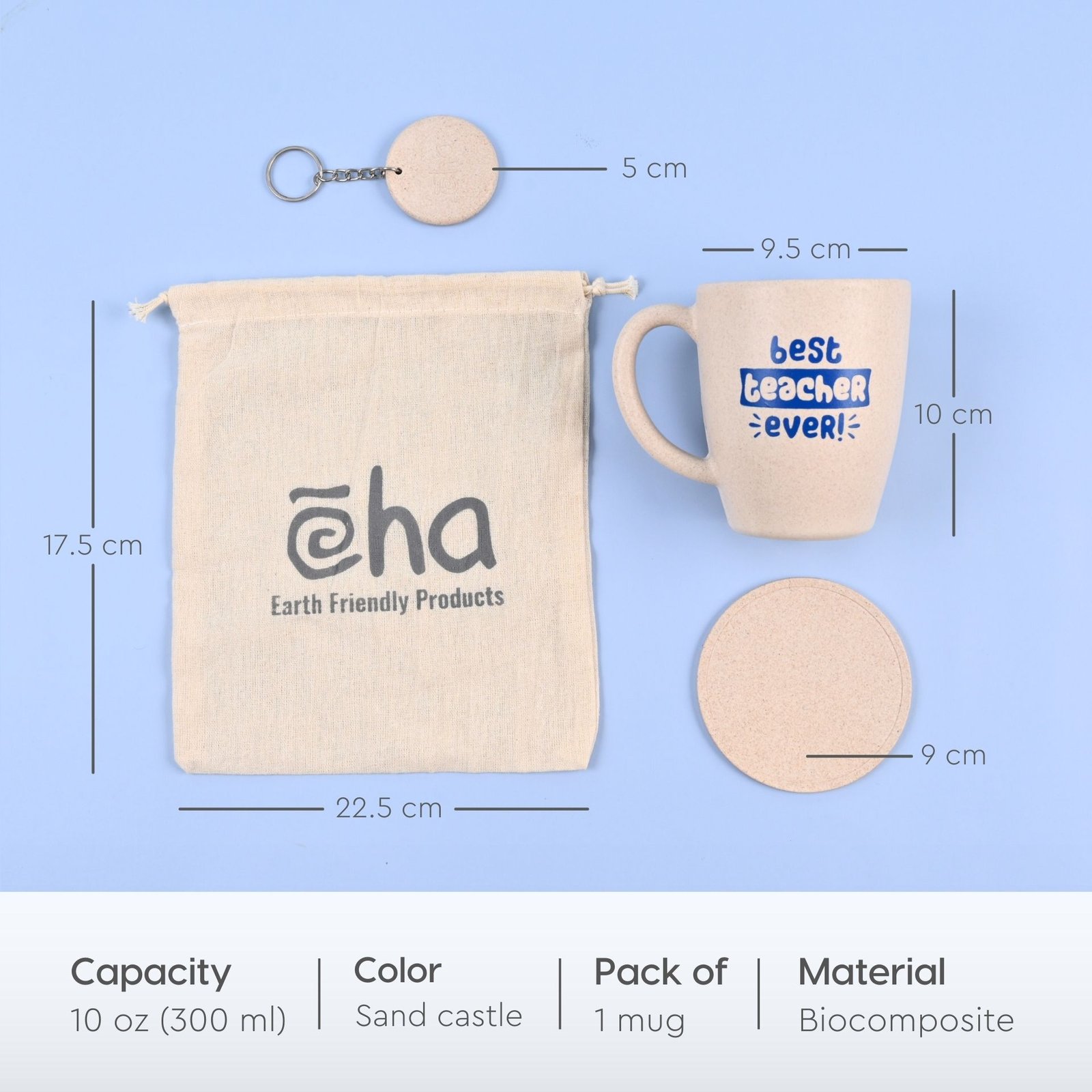 Eha Earth Friendly Best Teacher Ever gift for teachers | gift ideas for best teacher | gift for teacher Set of 1| 300 ml | Coffee Mug | Made with Rice Husk