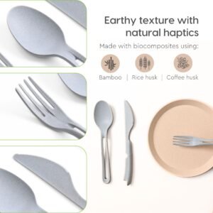 Eha Earth Friendly Cutlery Set for Dining Table | Set of 2 | Spoons and Forks Set Made with Rice Husk | Including Fork, Spoon & Knife | Dishwasher Safe Kitchen Set