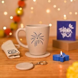 Be the first to review “Eha Earth Friendly Diwali Gift Hampers | Cracker Printed Mug, Coaster, Key Chain, Candle, Gift Bag, Card | Made with Rice Husk | Gift for Sister, Gifts for Women | Mugs for Gift | 300 ml”