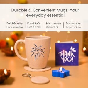 Eha Earth Friendly Diwali Gift Hampers | Cracker Printed Mug, Coaster, Key Chain, Candle, Gift Bag, Card | Made with Rice Husk | Gift for Sister, Gifts for Women | Mugs for Gift | 300 ml